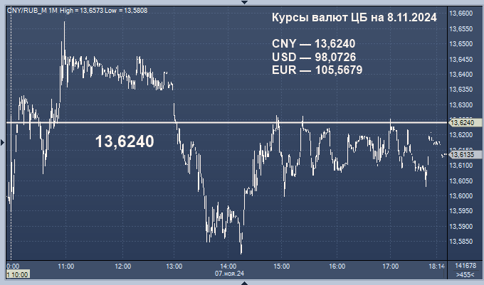 Китайский юань укрепляется на Московской бирже днем в четверг. Рубль дешевеет на фоне падения цен нефть, пишет Интерфакс. Торги долларом и евро не проводятся на Московской бирже с 13 июня из-за санкций. В связи с этим наиболее подходящими ориентирами колебаний курса (в том числе для внебиржевого рынка) являются котировки однодневного фьючерсного контракта с автопролонгацией на курс "доллар США - российский рубль" (USDRUBF) и такого же контракта на курс "евро - российский рубль" (EURRUBF).