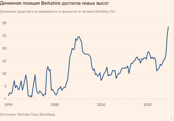 «Когда акции переоценены, Berkshire накапливает наличные, потому что Баффет находит всё меньше возможностей для покупки», — добавил Поллок. «Он не следует за рынком. Продать Apple и иметь столько наличных на высоко оценённом рынке — это в стиле Баффета».