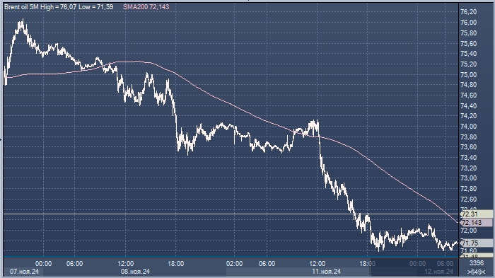 Цена марки Brent упала ниже $72 после падения почти на 3% в понедельник, а марка West Texas Intermediate торгуется около $68 за баррель. Последние меры поддержки правительства Китая, направленные на поддержку экономики, пока не дают немедленного эффекта, а инфляция, судя по последним статистическим данным, остается слабой. При этом индекс доллара почти достиг годового максимума, поскольку инвесторы делают ставку на американскую валюту на фоне победы Дональда Трампа, из-за чего нефть стала дороже для большинства покупателей.