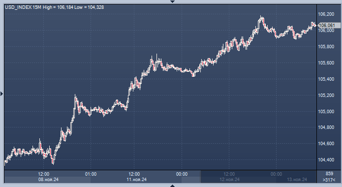 На прошлой неделе на президентских выборах в США победу одержал республиканец Дональд Трамп, и это событие оказало положительное влияние на курс доллара. Курс доллара США остановился на уровне 106,17, что стало максимальным значением с 1 мая.