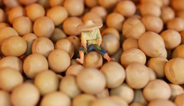 На этой иллюстрации, сделанной 20 июня 2023 года, изображены соевые бобы с миниатюрной фигурой фермера. REUTERS/Florence Lo