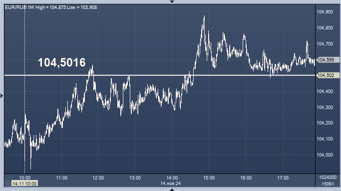 - 104,5016 рубля за 1 евро
