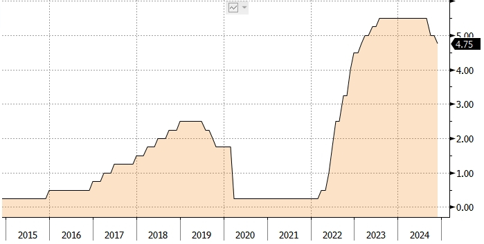 Экономисты Bank of America во главе с Адитья Бхаве ожидают, что ФРС снизит ставки на четверть пункта в декабре с текущего диапазона от 4,5% до 4,75%. ФРС с шагом в 25 б.п. снизит савки в марте и июне 2025 года, а затем сохранит ставки на уровне 3,875% до конца половины 2025 года.