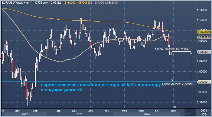 Угроза паритета евро возвращается на фоне разговоров о тарифах Трампа и сокращениях ЕЦБ