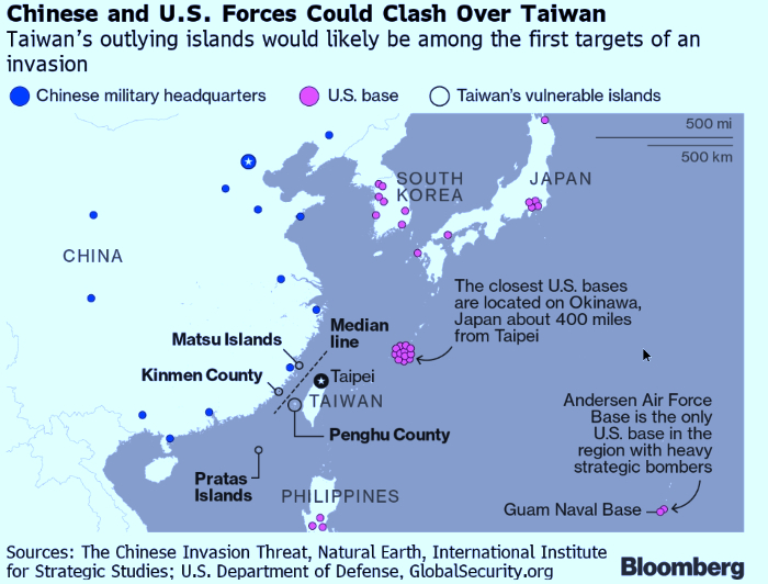 Для США и Японии Тайвань является жизненно важным оплотом в ряду архипелагов, на которые они полагаются, чтобы сдерживать Китай и защищать торговые пути. Тайвань процветал под американской защитой, став критически важным поставщиком полупроводников и других высокотехнологичных товаров. Сегодня остров с населением 23,5 млн человек также входит в число самых динамичных демократий Азии, что является ответом на аргументы Коммунистической партии о том, что западные политические структуры несовместимы с китайской культурой.
