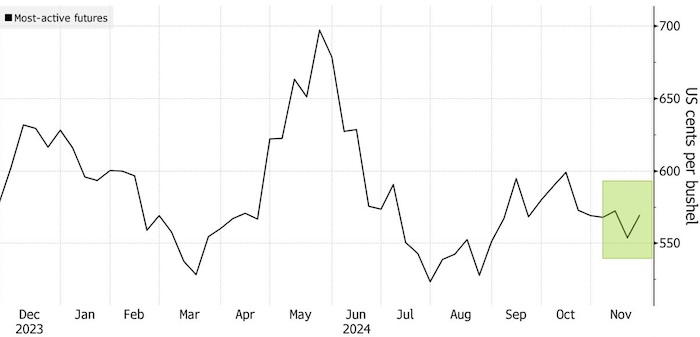 Однако сбор урожая в Западной Австралии начался позже срока из-за сильных дождей на этой неделе. По прогнозам метеорологической службы Maxar, такие влажные условия, вероятно, сохранятся и на следующей неделе. Австралийское бюро экономики сельского хозяйства и природных ресурсов в сентябре прогнозировало, что страна в целом произведет 31.8 млн метрических тонн пшеницы в сезоне 2024-25, что на 23% больше, чем в предыдущем сезоне.