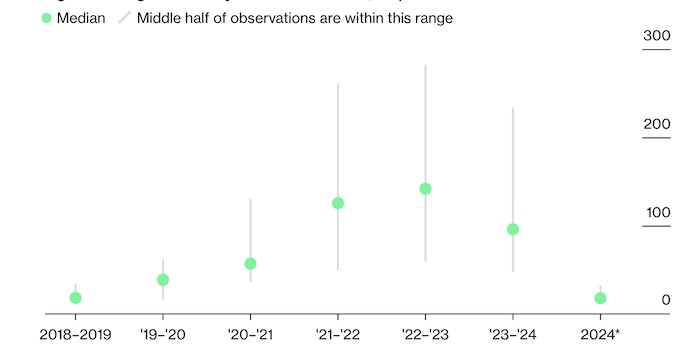 На строительной площадке «Новатэка» интенсивность освещения была наивысшей с 2022 по 2023 год, что совпало с периодом, когда объект строил две линии для «Арктик СПГ 2», показывают данные Института Пейна. Последующее затемнение огней в Белокаменке сигнализирует о паузе в строительстве на объекте.