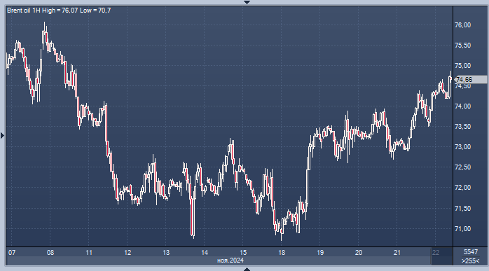 Оба контракта продемонстрировали рост на 2% в четверг и, как ожидается, продолжат расти более чем на 4% на этой неделе, что является самым высоким показателем с конца сентября. Это связано с усилением наступления России на Украине после того, как Великобритания и США разрешили Киеву использовать своё оружие для атаки на РФ.