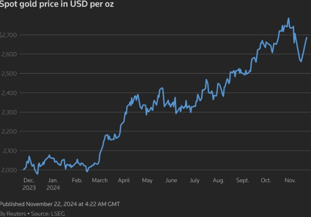 Спотовое золото подорожало на 1% до 2696,76 доллара за унцию по состоянию на 08:00 по Гринвичу. Это самый высокий показатель с начала октября 2023 года.