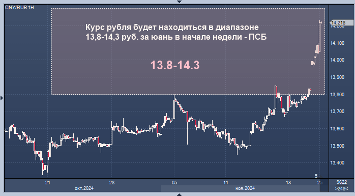 Курс рубля будет находиться в диапазоне 13,8-14,3 руб. за юань в начале недели, полагает начальник отдела экономического и отраслевого анализа Промсвязьбанка (ПСБ) Евгений Локтюхов.