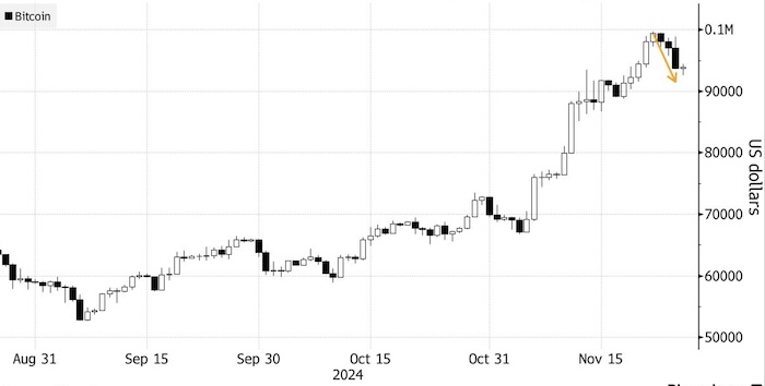 Цифровой актив за сутки подешевел примерно на 6%. На момент публикации он торгуется на уровне $94 245. Крипторынок в целом, со дня выборов увеличивший капитализацию на $1 триллион, тоже притормозил.
