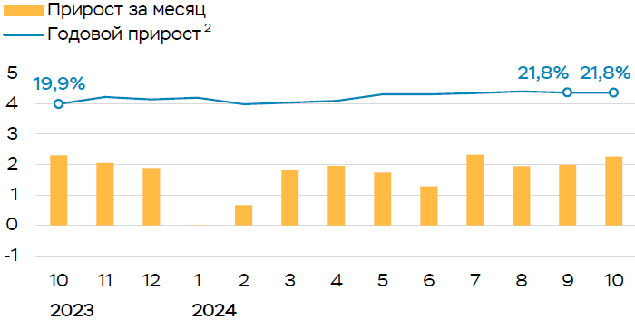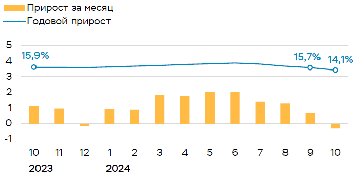 и сокращение портфеля потребительских кредитов (на 0,3% м/м после роста на 0,7% м/м в сентябре).