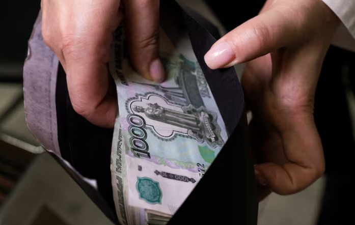 Сотрудник держит конверт с российскими 1000-рублевыми банкнотами в офисе банка в Москве, Россия, на этой иллюстрации, сделанной 9 октября 2023 года. REUTERS/Maxim Shemetov