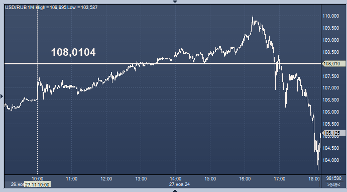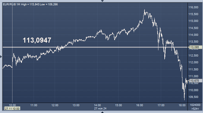 К вечеру курс рубля очень резко вырос. Это произошло на фоне отказа ЦБ от покупки валюты в рамках реализации бюджетного правила. Однако, поскольку движение началось заранее, на рынок просочился инсайд. Это видно по графику: разворотное движение началось задолго до обнародования мер регулятора.