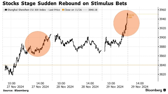 На этой неделе акции китайских компаний выросли уже во второй раз, поскольку трейдеры ожидают, что на ключевом политическом совещании в декабре будет объявлено о дополнительных мерах поддержки экономики.