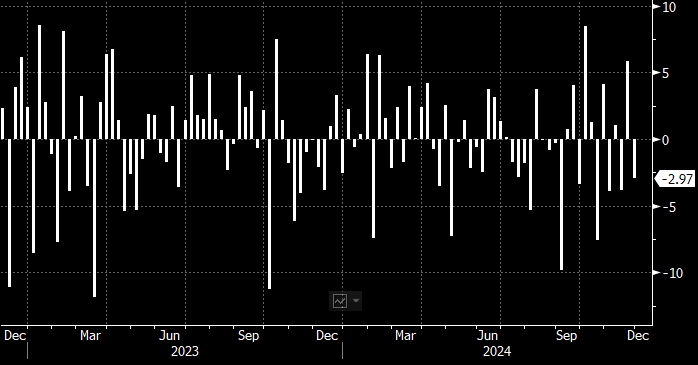 Цены на нефть Brent вечером в пятницу, 29 ноября, снижались на 0,5% и, как ожидается, потеряют по итогам недели 3% из-за снижения обеспокоенности по поводу рисков поставок из-за конфликта Израиля и «Хезболлы» и перспектив увеличения предложения в 2025 году, даже несмотря на то, что, как ожидается, ОПЕК+ продлит сокращение добычи.