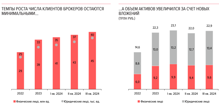 На рынок пришли крупные инвесторы, но темпы роста общего числа клиентов брокеров «остаются минимальными».