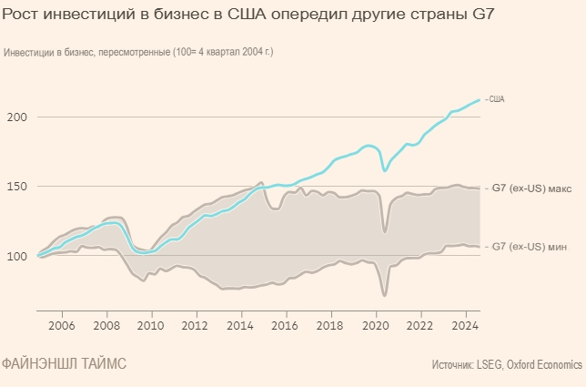 Другие развитые экономики не демонстрируют такого же динамизма. По данным Preqin, на США приходится 83% объёма венчурного финансирования в экономиках G7 за последнее десятилетие. Страна также привлекла 14,6% от общего объёма прямых иностранных инвестиций в новые проекты в мире за первые 10 месяцев 2024 года, что является рекордным показателем. Германия, напротив, зарегистрировала самую низкую долю мировых прямых иностранных инвестиций за 18 лет.