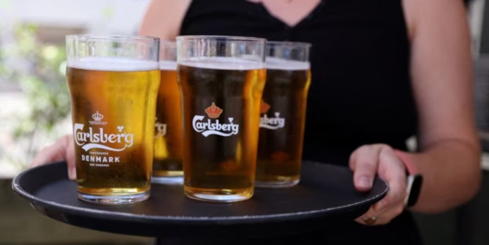Официантка несет поднос с пивом Carlsberg, Копенгаген, Дания, 30 июля 2022 г. REUTERS