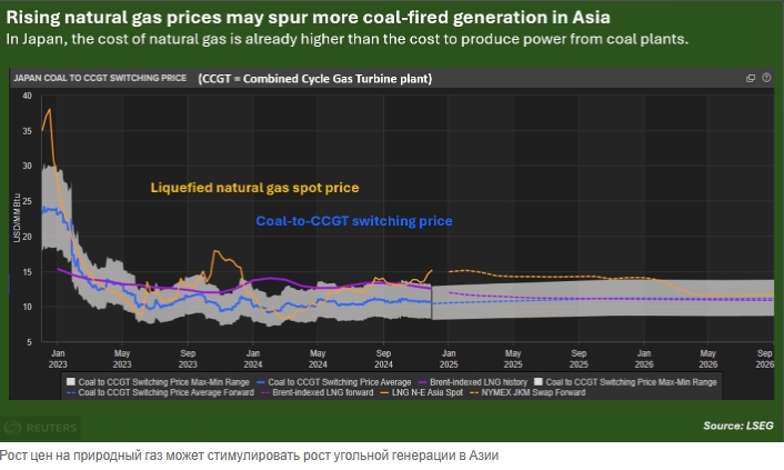Повышение стоимости природного газа может привести к увеличению использования угля в качестве топлива для производства электроэнергии в странах Азии.