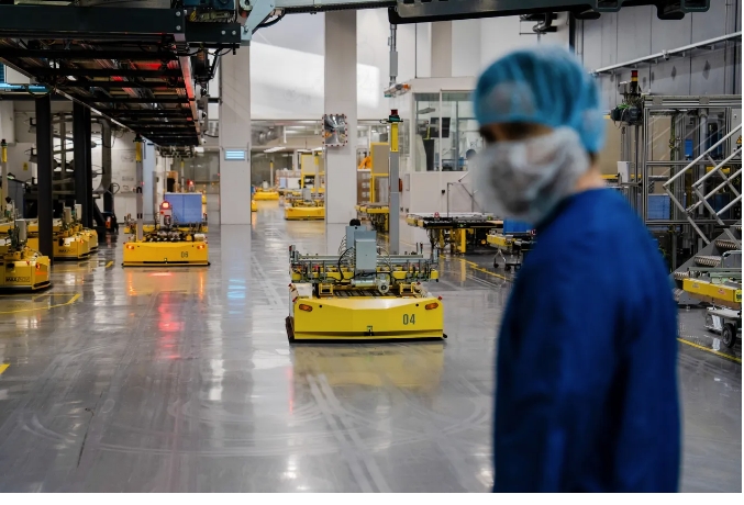 Роботы транспортируют грузы на фармацевтическом производственном предприятии Novo Nordisk A/S в Хиллероде, Дания.Фотограф: Шарлотта де ла Фуэнте/Bloomberg.