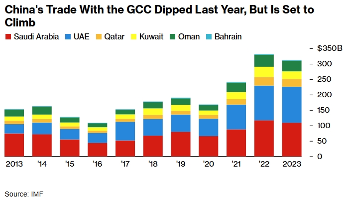 Такие страны, как Саудовская Аравия и Объединённые Арабские Эмираты, укрепляют связи с Китаем и другими быстрорастущими азиатскими экономиками, стремясь привлечь больше иностранных инвестиций и увеличить торговлю с основными покупателями своей нефти. Обе страны были приглашены присоединиться к группе стран с формирующимся рынком БРИКС, в которую входят Бразилия, Россия, Индия, Китай и Южная Африка, в рамках планов по укреплению альянсов так называемого глобального юга.