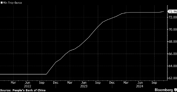 Золотые резервы Банка Китая в млн тройских унций. Источник: Bloomberg