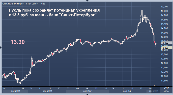 Курс пары юань/рубль в моменте способен вновь укрепиться в сторону 13,3 руб. за юань, волатильность на локальном валютном рынке пока остается высокой, считают аналитики банка "Санкт-Петербург".