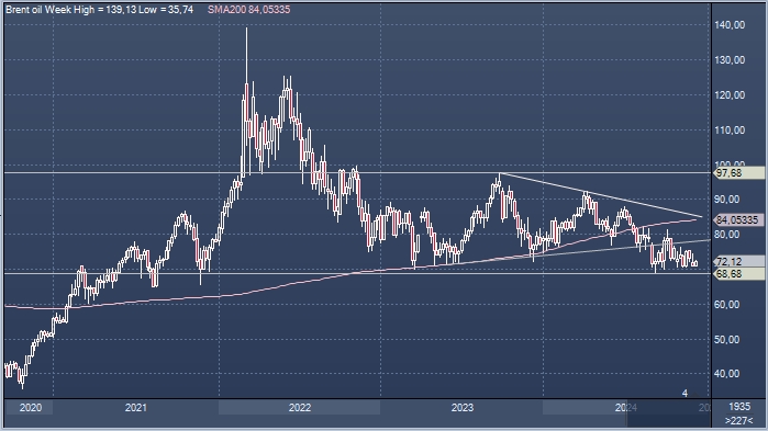 График нефти Brent интервалами в 1 неделю