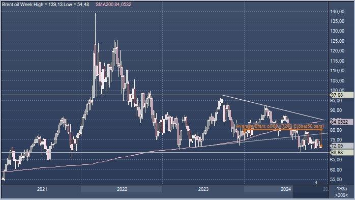 С начала 2024 года пока средняя цена Brent составляет $80,2 за баррель.