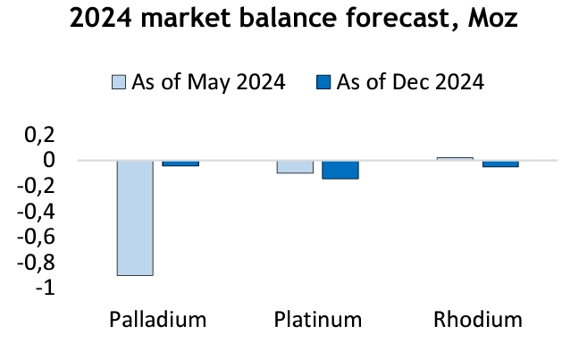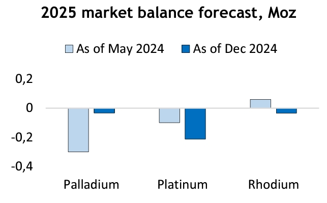 «В 2025 г. рынок палладия останется сбалансированным, поскольку снижение добычи в Северной Америке и Южной Африке будет компенсировано восстановлением вторичной переработки автокатализаторов. В то же время общий спрос, как ожидается, будет стагнировать, если не произойдет значительного ускорения в качестве реакции на снижение процентных ставок в западном мире и меры поддержки экономики в Китае».