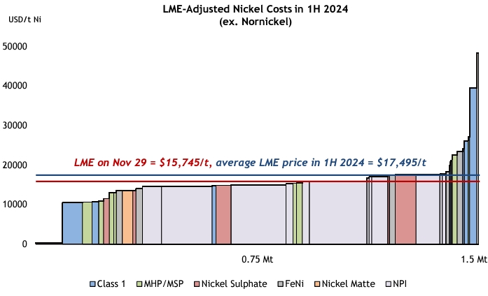 «Ожидается, что в 2024—2025 гг. на рынке никеля сохранится профицит на уровне 150 тыс. т Ni, который в основном будет сосредоточен в сегменте высокосортного никеля. Ввод в эксплуатацию новых мощностей в Индонезии для производства целого ряда никелевой продукции, включая ЧФН, конвертированный из ЧФН файнштейн, смешанный гидроксидный остаток (MHP), сульфат никеля и металлический никель, в сочетании с вводом новых проектов по выпуску катодного никеля в Китае будет сопровождаться устойчивым ростом спроса в секторах нержавеющей стали, сплавов и спецсталей, а также умеренным увеличением потребления в аккумуляторных батареях для электромобилей».