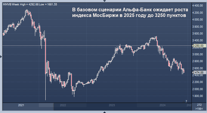 В базовом сценарии Альфа-Банк ожидает роста индекса МосБиржи в 2025 году до 3250 пунктов. Ключевым фактором, который будет стимулировать рост, станут дивиденды.