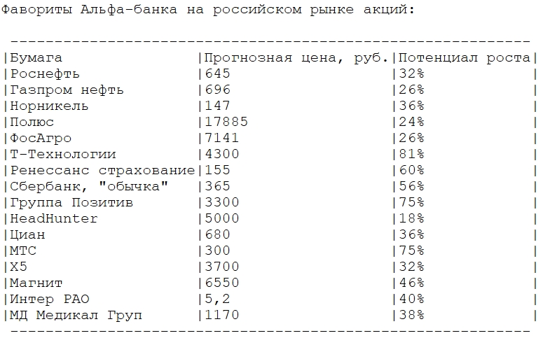 Фаворитами Альфа-Банка на российском рынке акций являются: