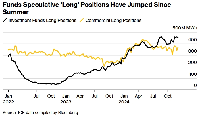 Однако в последние недели, когда температура стала более мягкой и увеличились потоки СПГ, краткосрочный рыночный пессимизм начал ослабевать. Спекулянты накопили значительное присутствие на рынке, и цены могут быстро измениться при изменении обстоятельств.
