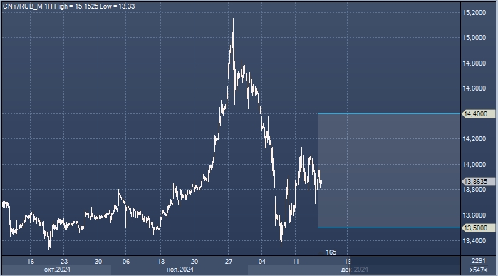 Курс рубля будет находиться в диапазоне 13,5–14,4 руб. за юань на текущей неделе, полагает старший аналитик УК «Первая» Наталья Ващелюк.
