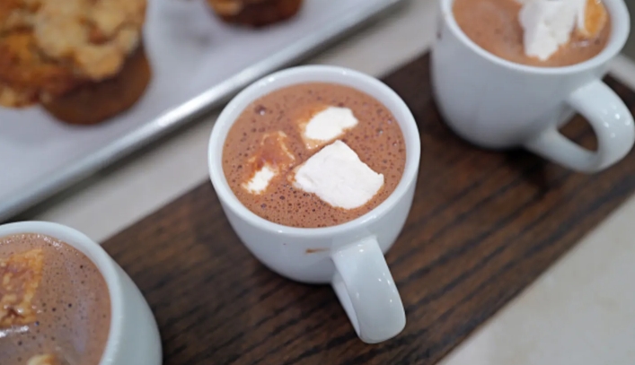 Работник готовит порцию питьевого шоколада для покупателя в Katherine Anne Confections, магазине и кафе по производству шоколада ручной работы, 2 февраля 2024 года в Чикаго, штат Иллинойс. Скотт Олсон | Новости Getty Images | Getty Images