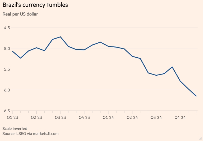В то время как валюты развивающихся рынков в целом испытывали трудности после победы Дональда Трампа на выборах в США в прошлом месяце, инвесторы заявили, что большинство проблем реала вызвано беспокойством о росте государственных расходов и задолженности при Луле. Меры стимулирования были благом для роста, но также способствовали более высокому уровню инфляции и вызвали вопросы о фискальной устойчивости.