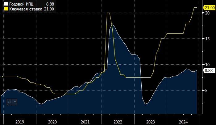 Bloomberg: «инфляционная боль» вынудит Банк России повысить ставку до 23–24% на следующей неделе
