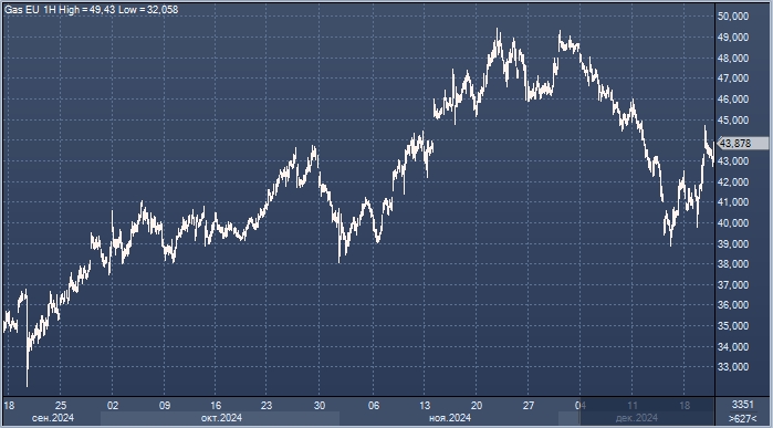 Окончание действия соглашения совпадет с периодом более холодной погоды, что может повлиять на спрос на газ. Запасы газа в Европе истощаются быстрее, нежели обычно происходит в это время года. Сейчас ПГХ заполнены на 76,5%. Это ниже среднего значения для этого времени года за 5 лет (79,5%), ниже, чем это было в той же точке в 2023 и 2022 году. Это усложнит задачу создания запасов в следующем году, поскольку Европе придется более жестко конкурировать с другими частями света за поставки газа морским путем, чтобы набрать запасы в следующем сезоне.