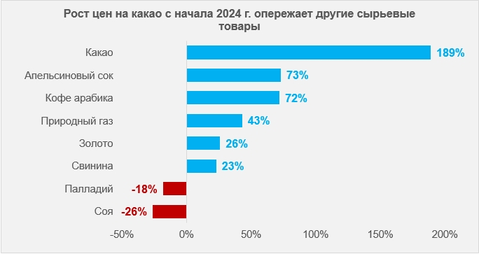 Рост цен на какао в 2024 году превзошел рост цен на все основные сырьевые товары, и нет никаких признаков того, что ограниченные поставки и нестабильная торговая обстановка скоро улучшатся.