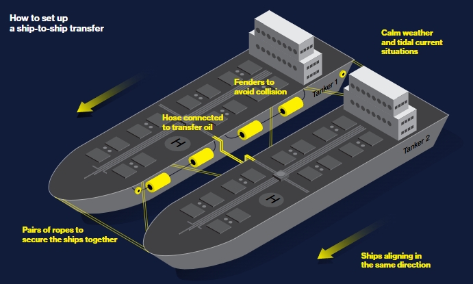 Перекачка нефти между судами в море сама по себе не является незаконной. Существуют честные причины заниматься этой практикой, и компании иногда используют их, чтобы избежать заторов в порту, получить доступ к местным и более мелким гаваням или справиться с плотным графиком. Но большинство этих действий, как правило, происходят в портах или вблизи них или в обозначенных районах, и власти уведомляются заранее, как того требуют ИМО и международные правила предотвращения загрязнения в море. Требуются квалифицированный персонал, надзор и проверки.