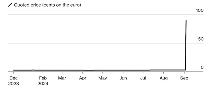 Пожалуй, самое дикое и неожиданное ралли года произошло на нишевом рынке в Мадриде. Насколько дикое? 2 900% за считаные секунды. Вся история создавалась около 20 лет, но вот краткий пересказ: облигация была выпущена в начале 2000-х банком, который был поглощен банком, который затем был поглощен другим банком, и в какой-то момент всех этих маневров инвесторы махнули на облигацию рукой. Большинство списало ее как практически бесполезную из-за всей этой чехарды с собственниками.