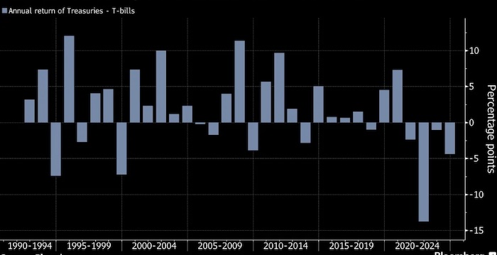 Инвесторы в инструменты с фиксированным доходом получили большую и легкую прибыль, следуя стратегии полного отказа от торговли: размещение денег в безрисковых казначейских векселях — эквиваленте наличных — позволило превзойти доходность государственных облигаций США.
