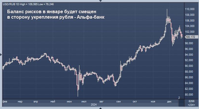 Баланс рисков в январе будет смещен в сторону укрепления рубля, говорится в материале Альфа-банка.