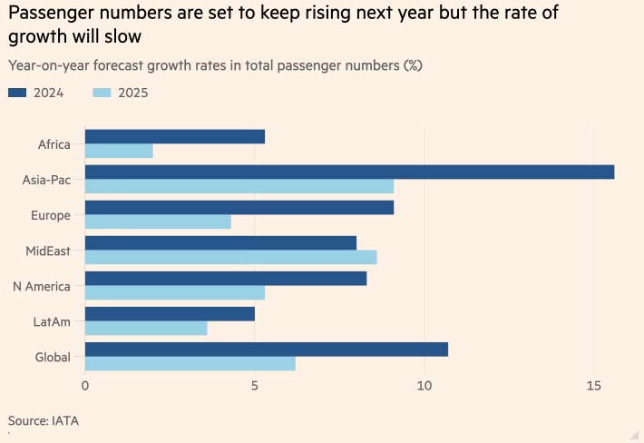 Эта цифра отражает более медленный рост, чем 10,7%, достигнутые в этом году, при этом Уилли Уолш, генеральный директор IATA, отметил, что эти цифры отражают «возвращение к более нормальным уровням роста после чрезвычайного восстановления после пандемии».