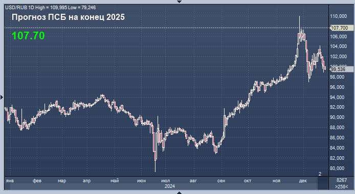 "Обострение геополитических рисков, с постепенной адаптацией системы к ним, может приводить к локальным, пусть и резким колебаниям. Геополитический фактор, как мы надеемся, ослабит свое влияние на курс к концу 2025 года. Наш прогнозный ориентир на конец года: 107,7 рубля за доллар США и 15,5 рубля за юань", - резюмируют стратеги ПСБ.