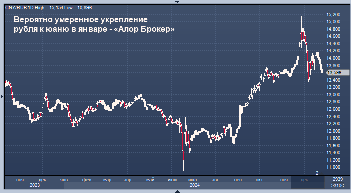 Вероятно умеренное укрепление рубля к юаню в январе следующего года из-за традиционного снижения спроса на валюту со стороны импорта и реализации накопленной за новогодние каникулы выручки экспортеров, говорится в материале аналитиков инвестиционной компании «Алор Брокер».
