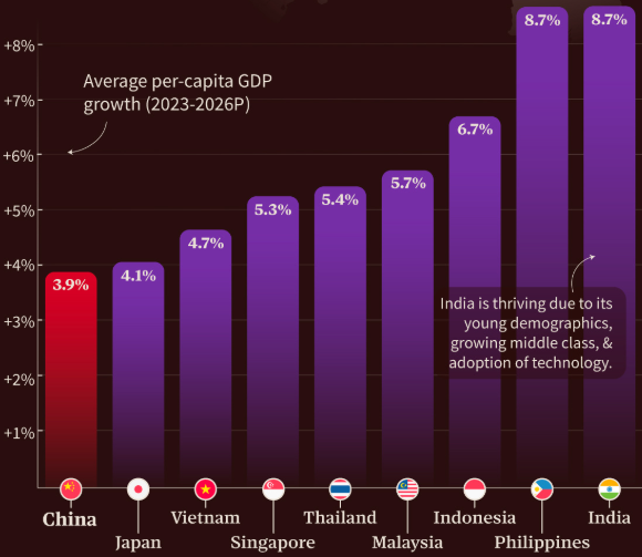 Экономика Китая продолжает сталкиваться с серьезными вызовами, включая кризис на рынке жилья и высокую безработицу среди молодежи. Теперь, после десятилетий быстрого развития Китай, как ожидается, начнет отставать от других азиатских стран по темпам роста ВВП на душу населения.