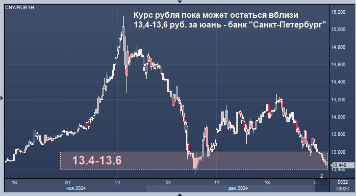 Курс пары юань/рубль пока может остаться вблизи уровней 13,4-13,6 руб. за юань, считают аналитики банка "Санкт-Петербург".